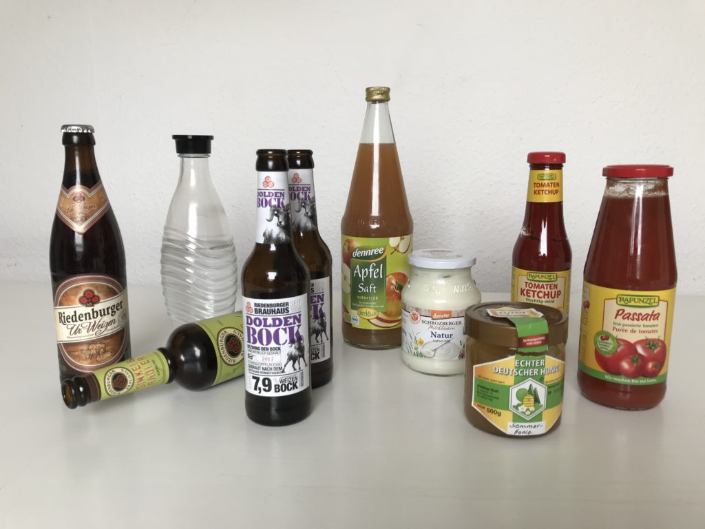Mittlerweile klappt es bei uns sehr gut mit den Mehrwegflaschen. Unser Verbrauch von Saft ist extrem zurückgegangen. Das tut auch der Gesundheit gut, denn Fruchtsäfte haben einen hohen Zuckeranteil. Wasser kommt bei uns aus der Leitung und wird ab und zu aufgesprudelt. Da spart man sich auch einiges an Schlepperei. Und für die Milch haben wir mittlerweile sogar eine Abfüllstation um die Ecke gefunden.